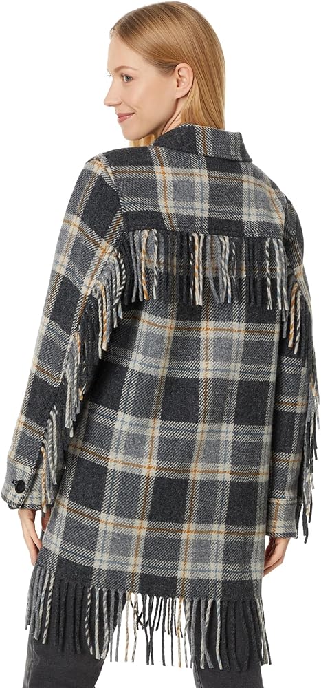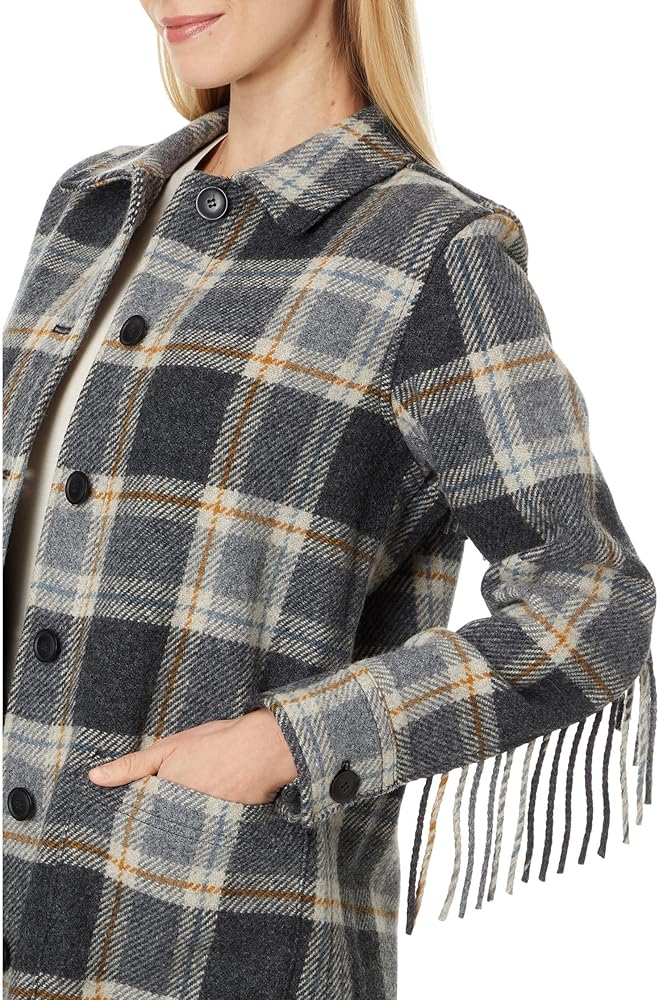 - A longer jacket length, accented with high-quality generous-length fringe at hem