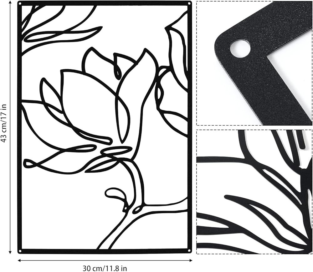 تصميم كلاسيكي: تتميز الأعمال الفنية الجدارية المعدنية على شكل زهرة بتصميم نمط الزهور الكلاسيكي، واللون الكلاسيكي يتطابق جيدًا مع الإطار المستطيل، وتم تحديد خطوط الزهور بوضوح، لتمنحك إحساسًا فنيًا، وتضفي لمسة أكثر أناقة على الحائط