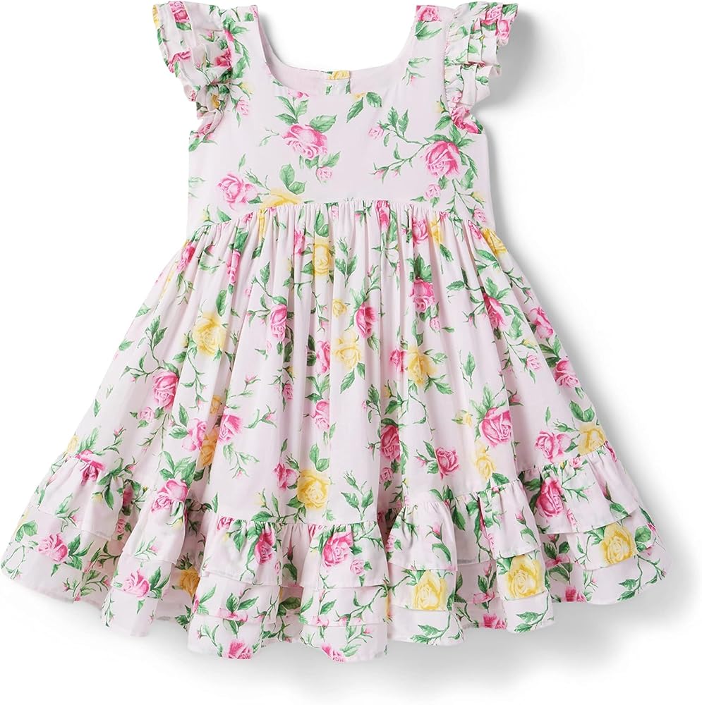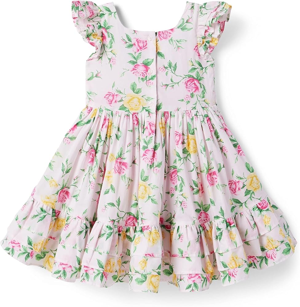 When you are looking for an effortless ensemble for your junior to keep them stylish and comfortable at the same time, the Janie and Jack Floral Dress is an appealing option. Square neckline and ruffled short sleeves. Buttoned back closure. Allover colorful floral print. Flared skirt with pleats and tiered ruffles. Ruffled hem. Hits below the knee. 100% cotton. Machine washable. Style Number: 100045808.