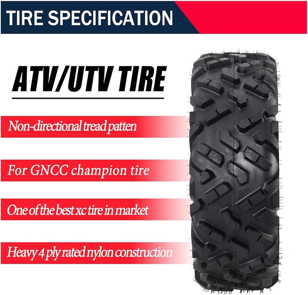 🚜【نطاق المقاسات】يلبي الإطار مجموعة واسعة من نماذج ATV وUTV وتفضيلات الراكب، مما يضمن الجر الأمثل والثبات لمختلف إعدادات المركبات. يتراوح حجمها من 18 إلى 26 بوصة. الحافة (الحواف) غير متضمنة. قبل الشراء، يرجى التحقق من حجم الإطارات الأصلية في سيارتك للتأكد من أنك تشتري الإطارات ذات الحجم الصحيح.