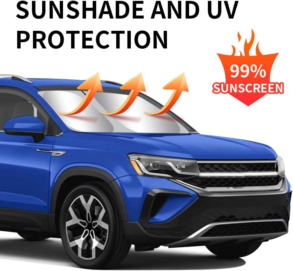 ✅【مواصفات السيارة】غطاء تظليل الزجاج الأمامي الخاص بنا مناسب خصيصًا لسيارة VW Taos 2022-2024. تصميم ملائم بدقة وحلقات فولاذية معززة تجعل ملاءمة دقيقة وآمنة للنافذة، لا حاجة لاستخدام أكواب الشفط لتثبيتها في مكانها، بدون فجوة، ملاءمة مثالية بنسبة 100%.