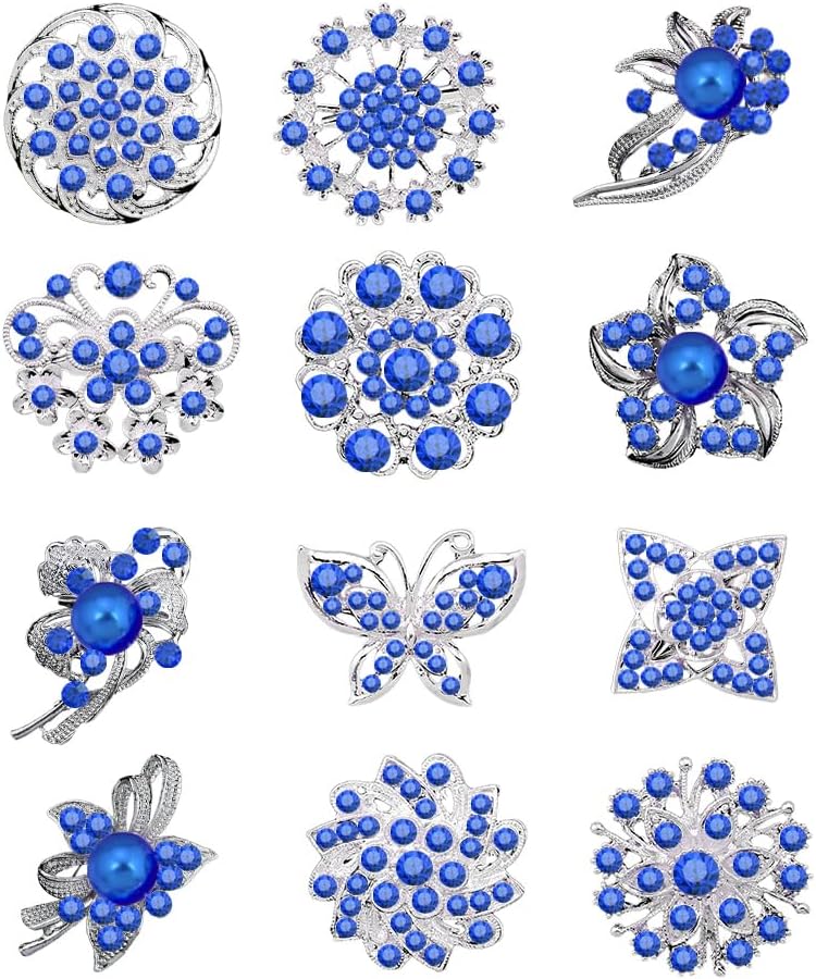 12pcs mixed style in a lot, with crystal brooch and faux pearl brooch , they are all different style. Used them to make your wedding bridal bouquet.