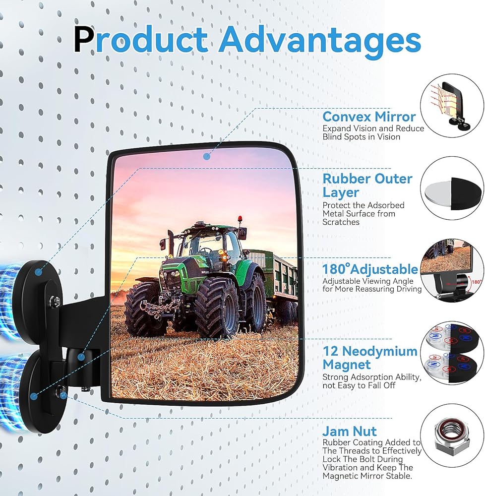 4)Crafted with durability in mind, our tractor magnet mirrorr is built to withstand the rigors of agricultural use. Made from high-quality materials, it is resistant to impact, vibrations, and harsh weather conditions.