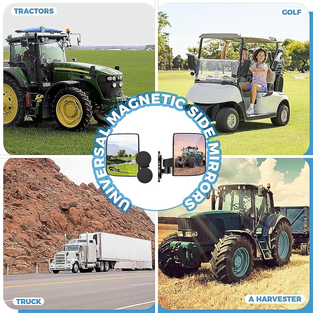3) The magnetic side mirrors come with adjustable viewing angle convex mirror, offers improved visibility for your tractor, it ensures that you have a clear view of your surroundings, Fit for Tractor, Dozer, UTV, Lift Truck, Lawn Mower, Golf Carts, Forklift accessories, Compatible with John Deere, Kubota, Toyota, Yale, Crown, Case IH
