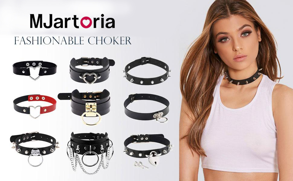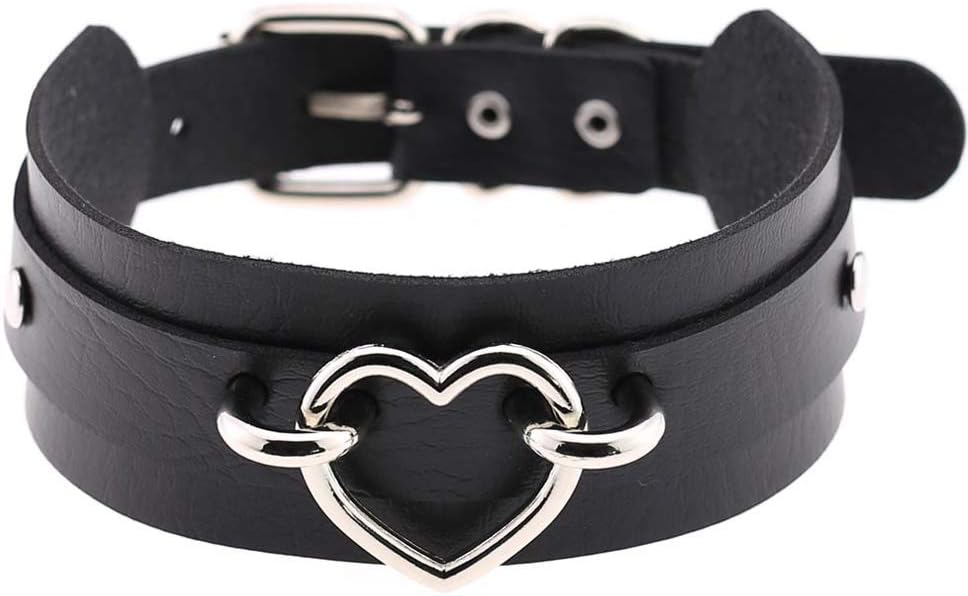مجوهرات MJartoria القوطية - قلادات على شكل قوطي للنساء - قلادات على شكل قلب من نوع Punk Rock قابلة للتعديل بياقة سوداء (قطعة واحدة - أسود)