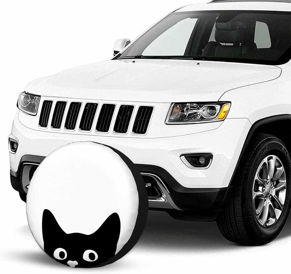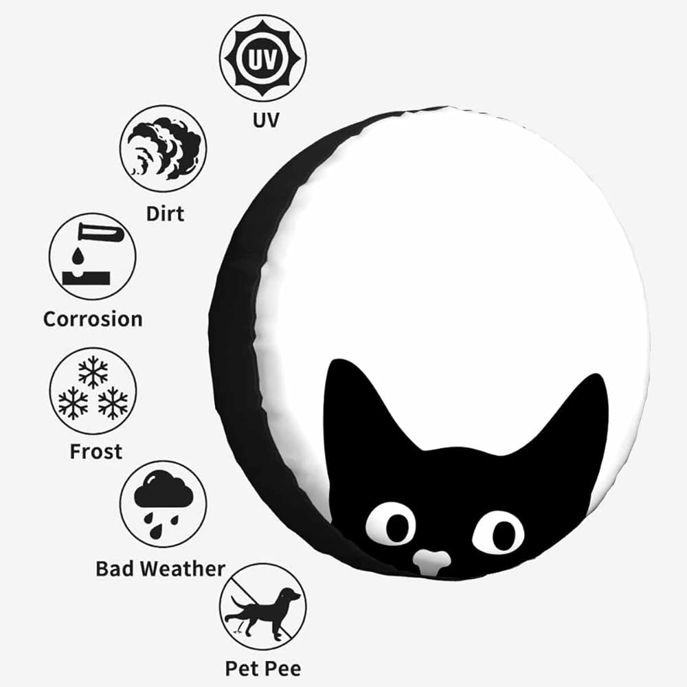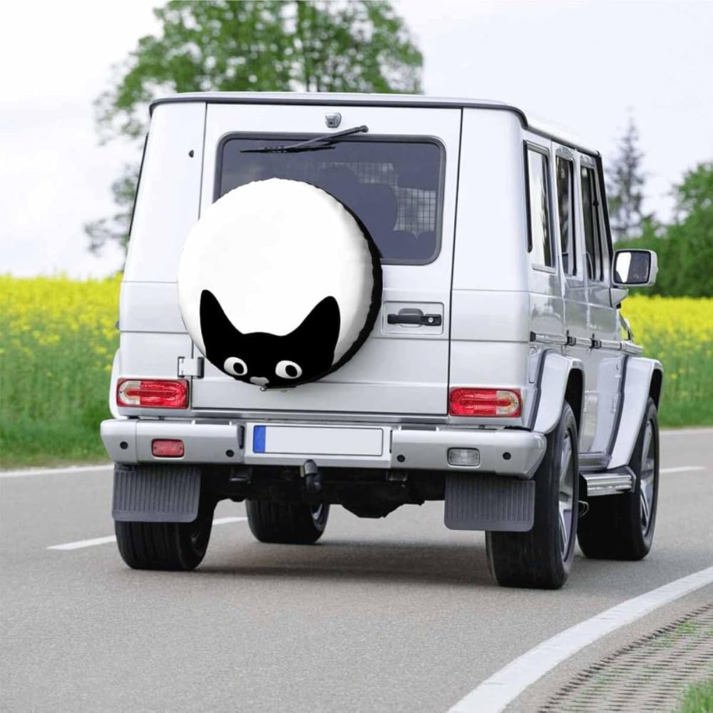 القط الأسود مع عيون كبيرة غطاء الإطار الاحتياطي 15 بوصة عجلة لطيف الحيوان الحيوانات الأليفة هريرة غريبة حماة مانعة لتسرب الماء العالمي لغطاء إطار المقطورة Rv SUV شاحنة تخييم السفر مقطورة