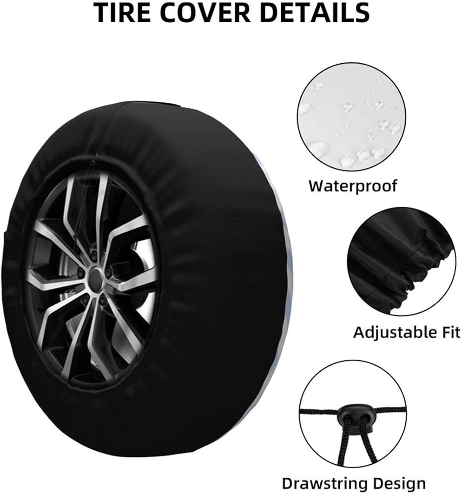 [Function]: It's the perfect all-season cover to help protect against sun, rain, mud, and other elements. Avoid tire cracks, help maintain rubber shape and extend tire life. Ideal for storing or protecting tires and wheels from sun damage, bird drops, rust and dirt.Effectively Protect Your Spare Tire In The Rain, Snow, Wind, Dust, Sun, And Any Bad Weather. And strongly improves your vehicle appearance.