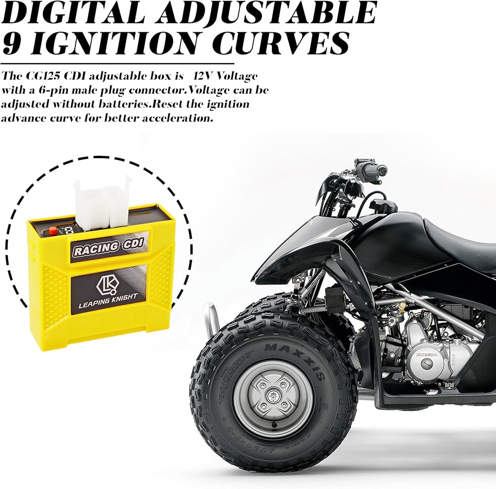 √ منحنيات إشعال رقمية قابلة للتعديل: صندوق CG125 CDI القابل للتعديل هو جهد 12 فولت مع موصل قابس ذكر 6 سنون. يمكن تعديل الجهد بدون بطاريات. أعد ضبط منحنى تقدم الإشعال لتسريع أفضل.