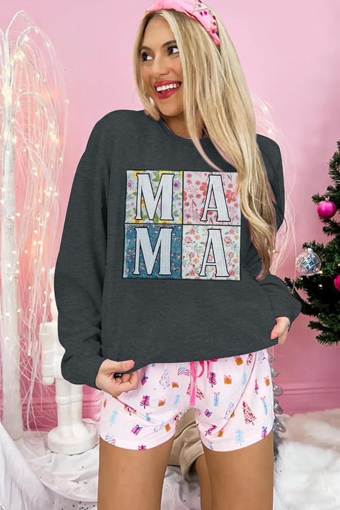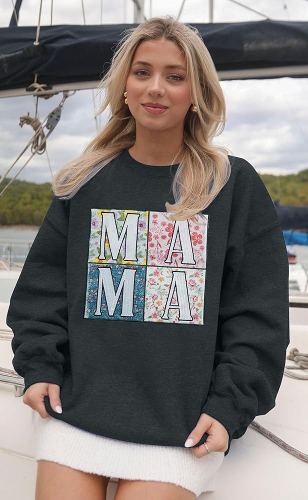 المواد: سويت شيرت مطبوع عليه حروف ماما لطيف مصنوع من مزيج القطن. خفيفة الوزن وناعمة ومريحة. رائع للربيع والخريف والشتاء.