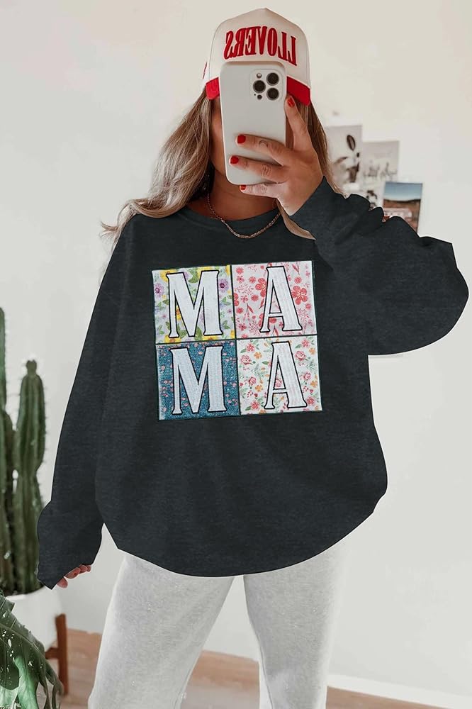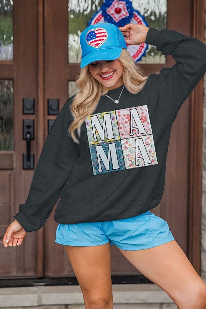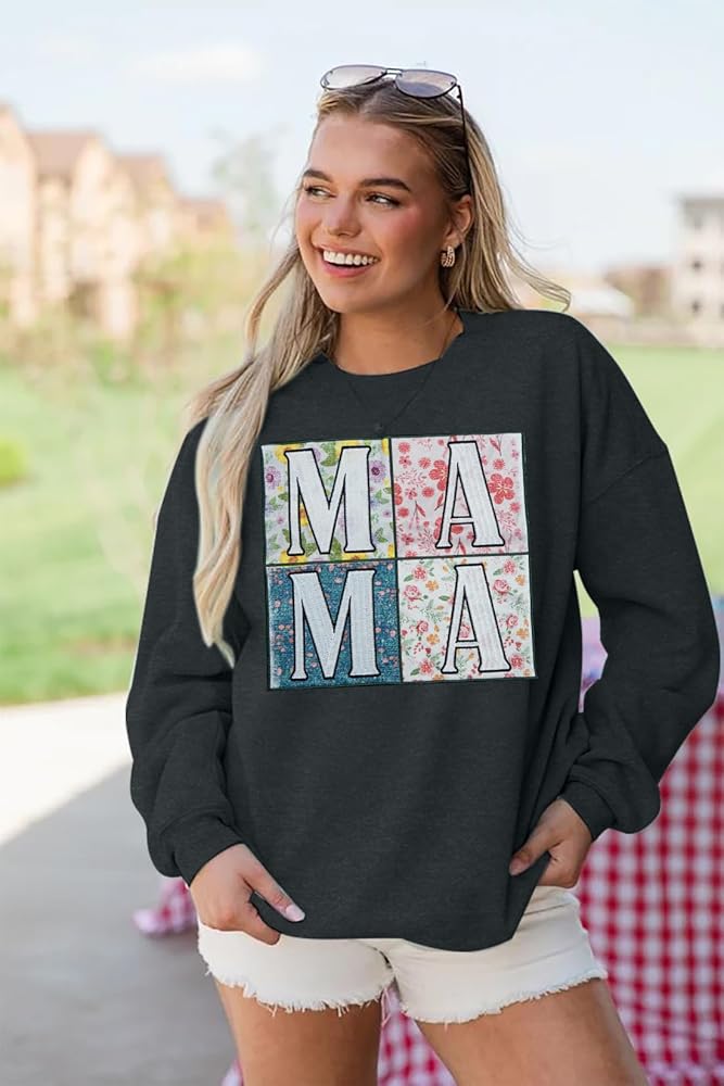 السمات: سويت شيرتات Mama للسيدات كبيرة الحجم، بلوفر علوي مضحك مطبوع عليه حروف ماما، بلوفر نسائي ماما، بلوفر كاجوال كبير الحجم.