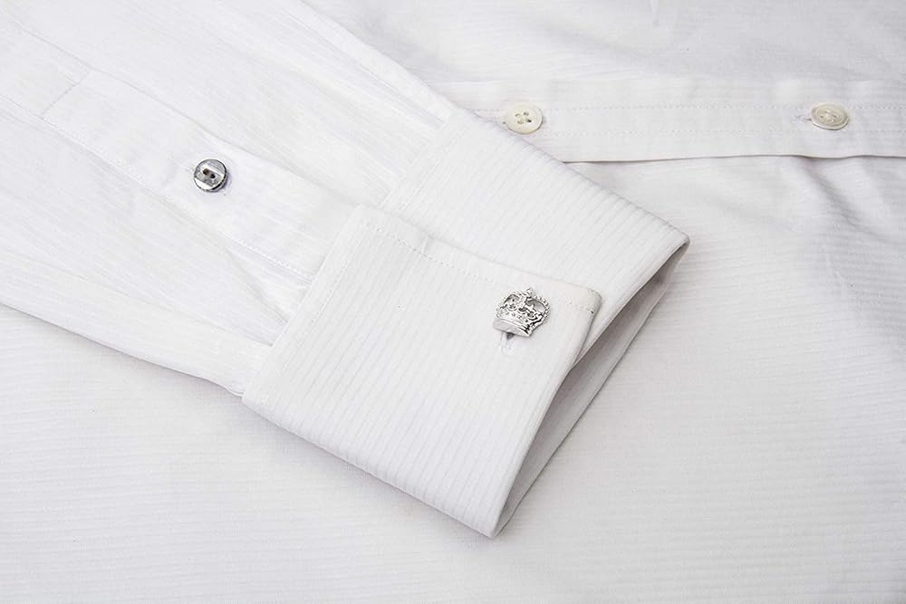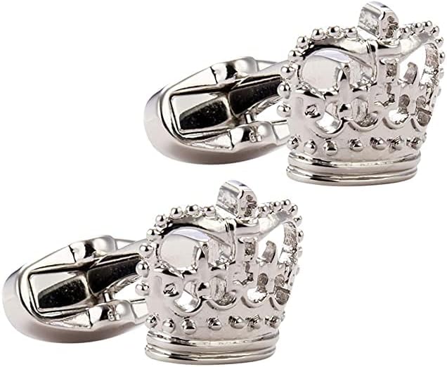The cufflinks feature a royal crown shape in sleek silver, exuding a sense of authority and nobility. Their minimalist yet distinctive design ensures they complement various shirt styles and colors, making them a versatile accessory for any wardrobe.
