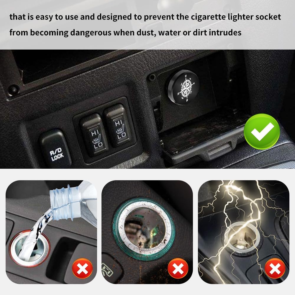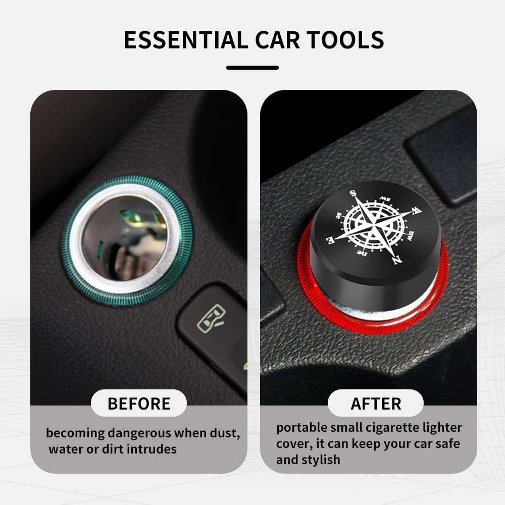 • 🐮 Material Design - Car cigarette lighter cover is made of aluminum alloy material, the product surface is smooth and comfortable, choose the compass pattern, the texture is hard and solid, daily use is not easy to damage, can be used for a long time. This product is simple and easy to install, can decorate your car.