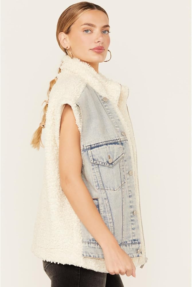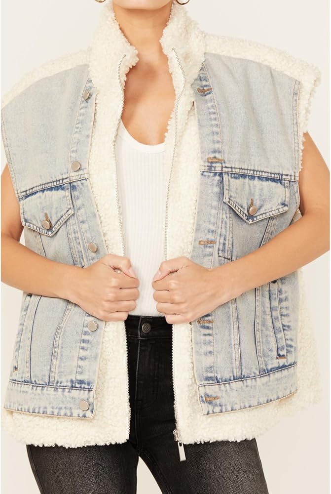 - سترة سائق الشاحنة من الدنيم مع تفاصيل شيربا صناعي