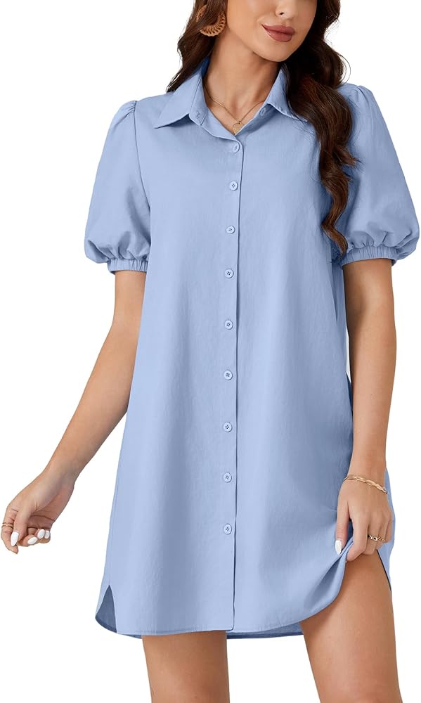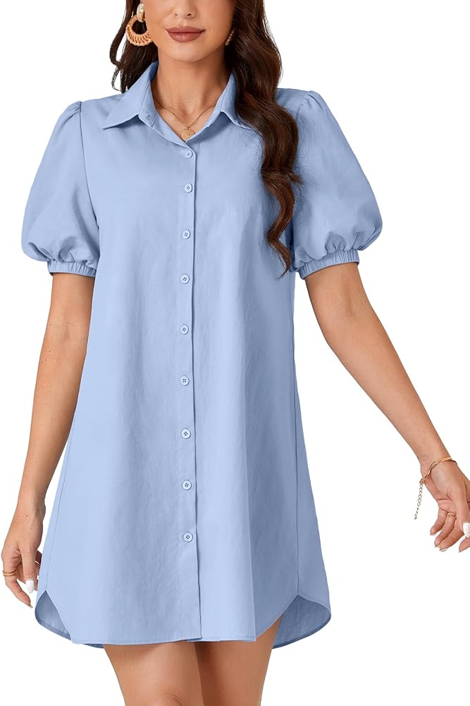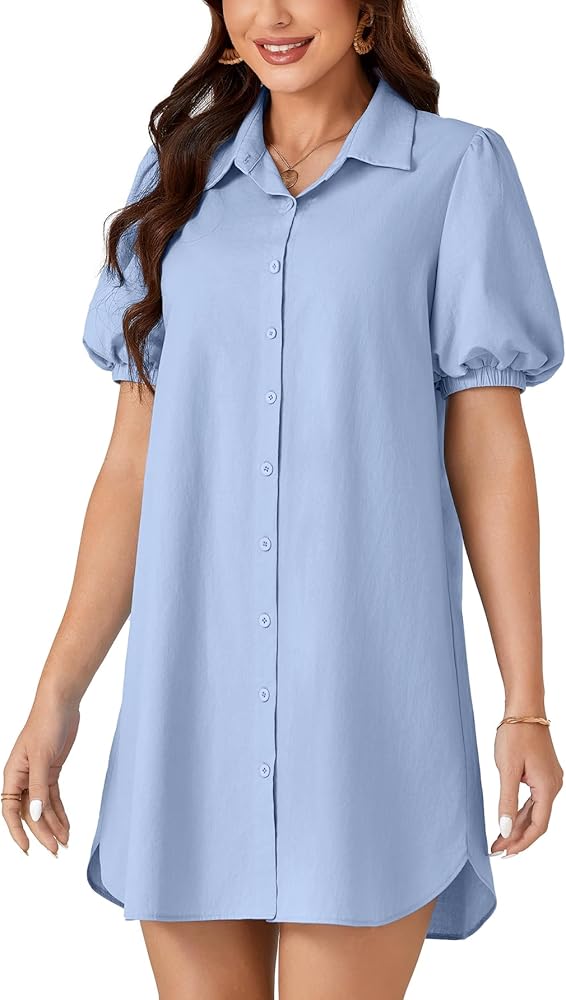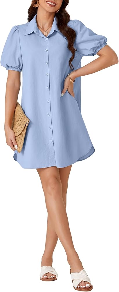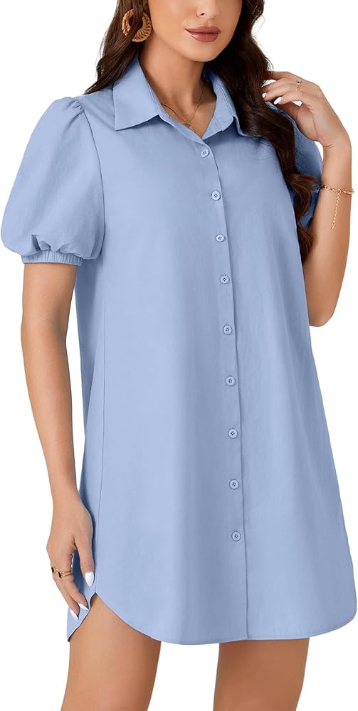 المناسبات: فستان قصير منتفخ بأكمام قصيرة مثالي للشاطئ، والحفلات، والخروج، والتسوق، والمواعدة، والتخرج، والسفر والمناسبات الأخرى. هذا الفستان ذو الأزرار السفلية هو منتج متعدد الاستخدامات للسيدات.