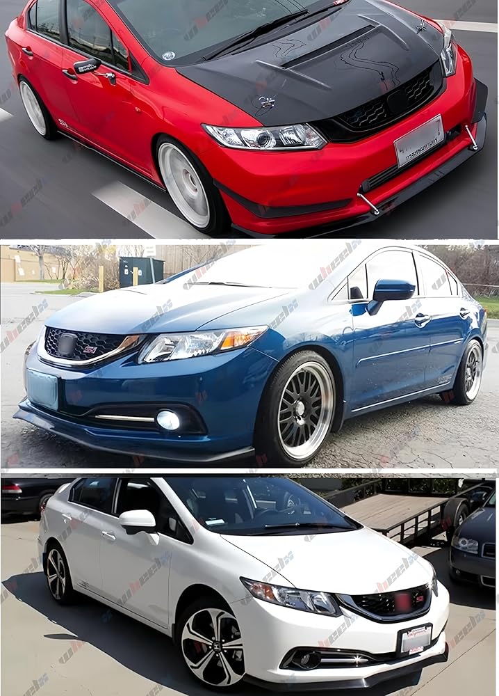 WheelX 3Pcs Front Bumper Lip Compatible with 2013-2015 Honda Civic. Professional Installation Is Highly Recommended.