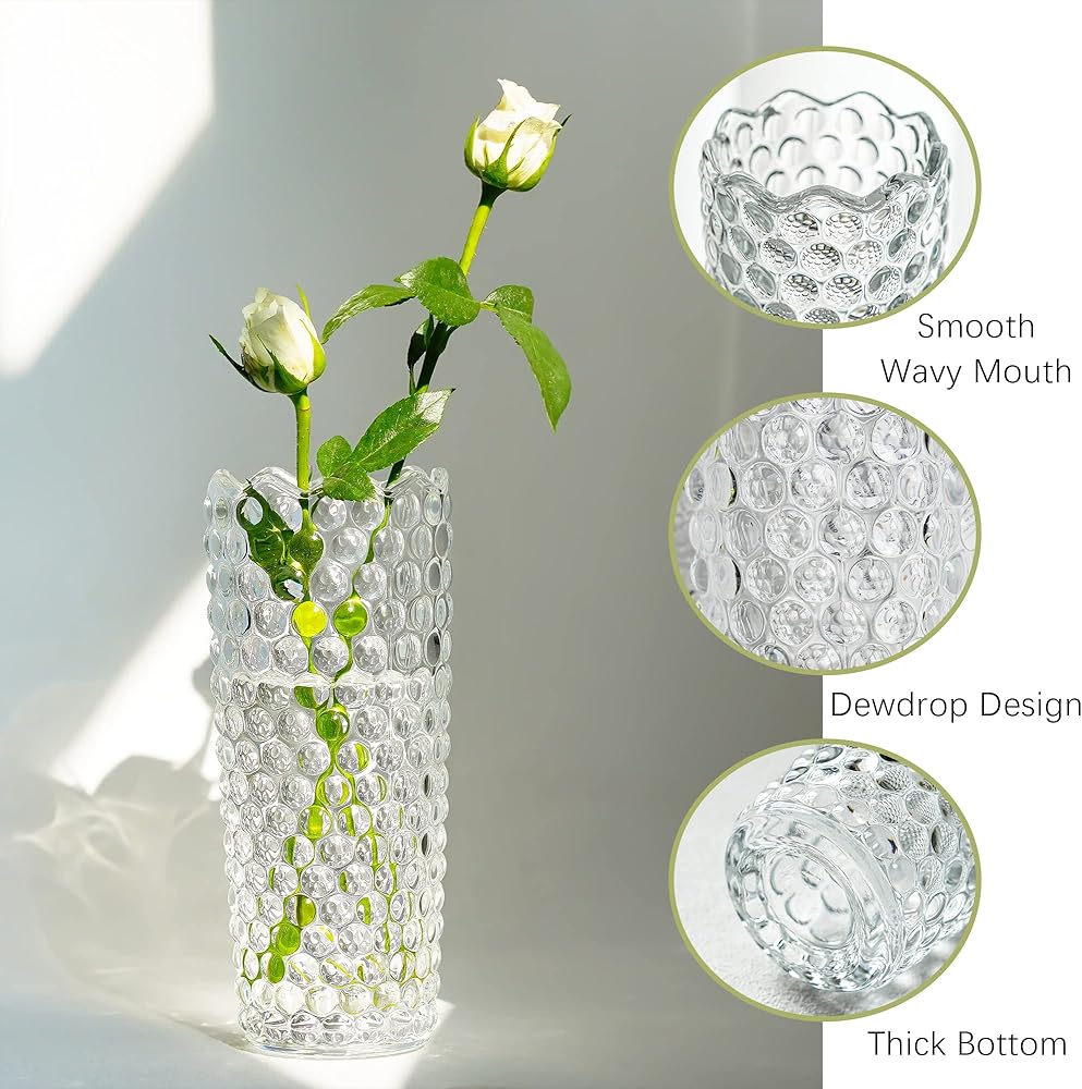 تصميم رائع: هذه المزهرية ذات الطراز البوهيمي الشمالي بطول 7.5 سم، منقوشة بتصميم رائع ورائع على شكل قطرة الندى؛ إنتاج الزجاج الكريستالي، المزهرية أكثر لمعانًا، خاصة في الضوء العاكس، ستكون المزهرية مشرقة جدًا.