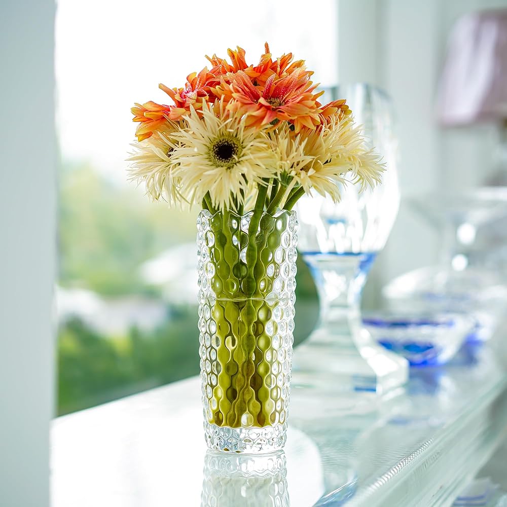 خامة عالية الجودة: مصنوعة من مادة زجاجية مصنوعة يدويًا عالية الجودة مع قاعدة سميكة، هذه المزهرية الزجاجية خالية من الرصاص، وقوية، ومتينة، ومضادة للتسرب وسهلة التنظيف.