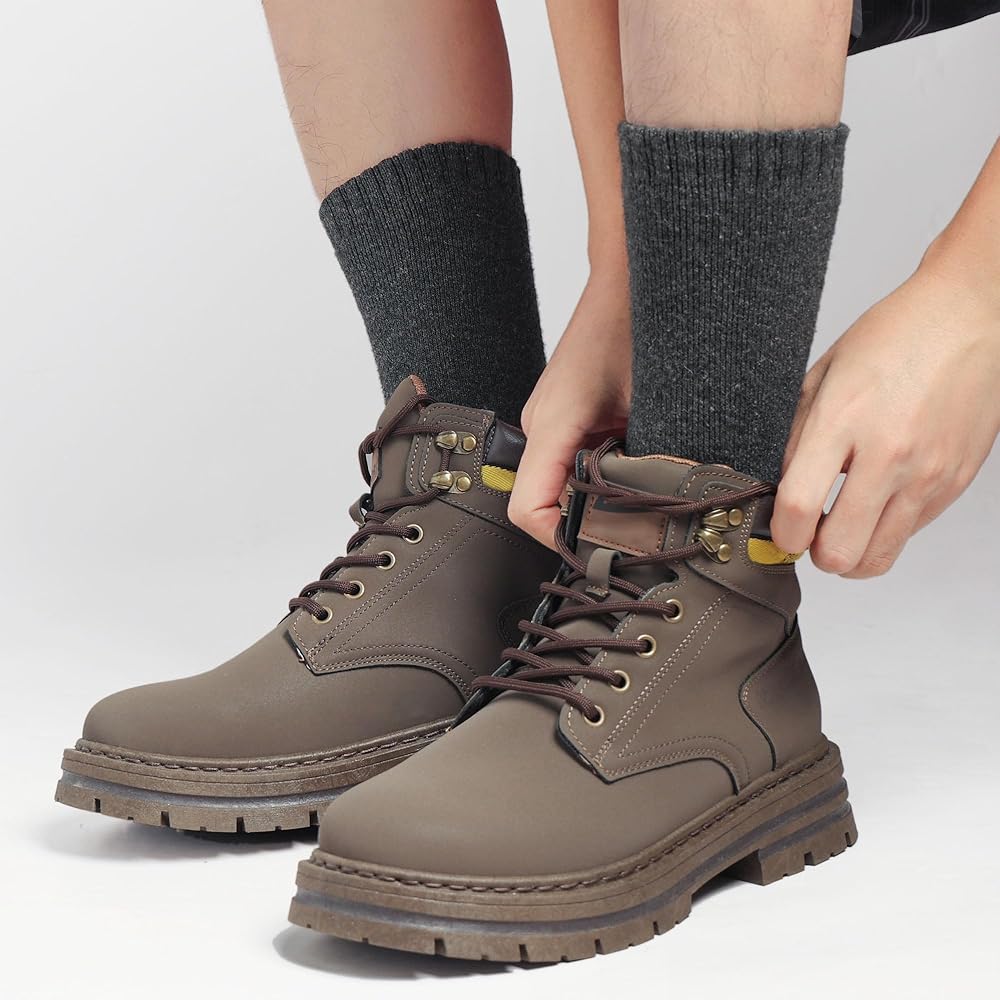 The warm crew wool socks are thick but not too heavy or bulky. Lengthen cuff top is elastic and snug fit, keep it stay on place without slipping down. It has excellent moisture-wicking and cozy. Perfect for winter shoes, snow boots, hiking boots, sneakers, work boots. Always keep your feet warm at home and outdoor