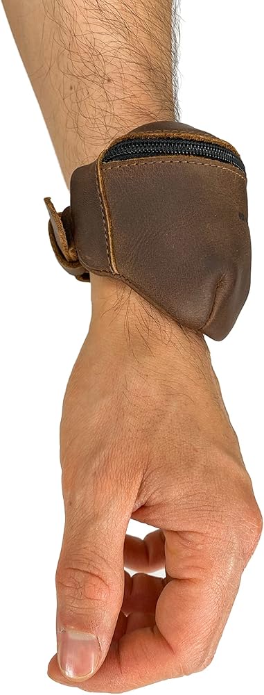 حقيبة معصم إخفاء وشرب، فاني مع حزام قابل للتعديل مصنوع يدويًا من جلد محبب بالكامل - حمل وتخزين الأموال والعملات المعدنية والفواتير والأشياء الشخصية الصغيرة - بني بوربون