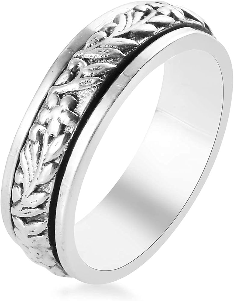 Inspired by an artisan look, this spinner ring with meticulous detailing is durable and hypoallergenic.