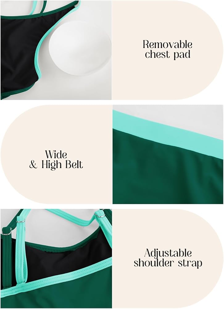 【ملابس سباحة ذات ألوان زاهية】: مجموعة البكيني النسائية مصممة بألوان زاهية متباينة، أنيقة وفريدة من نوعها. تم تصميم ثوب السباحة المكون من قطعتين مع جزء علوي قصير رياضي، وجزء سفلي من بيكيني عالي الأرز، والذي يمكن أن يسلط الضوء بشكل أفضل على منحنيات جسمك الساحرة، ويجعلك أكثر ثقة وحيوية