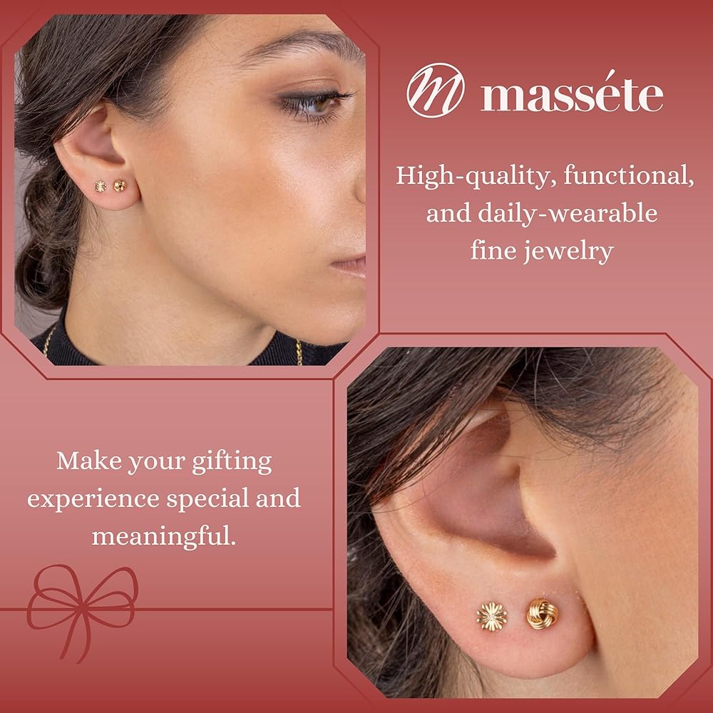 هدية مثالية: مجموعة الأقراط الذهبية هذه هي هدية مثالية لأي مناسبة. سواء كان عيد ميلاد أو ذكرى سنوية أو بدون سبب، أظهر لأحبائك مدى اهتمامك بهذه الأقراط الذهبية الحقيقية. معبأة في صندوق هدايا جميل خاص يحمل العلامة التجارية MASSETE