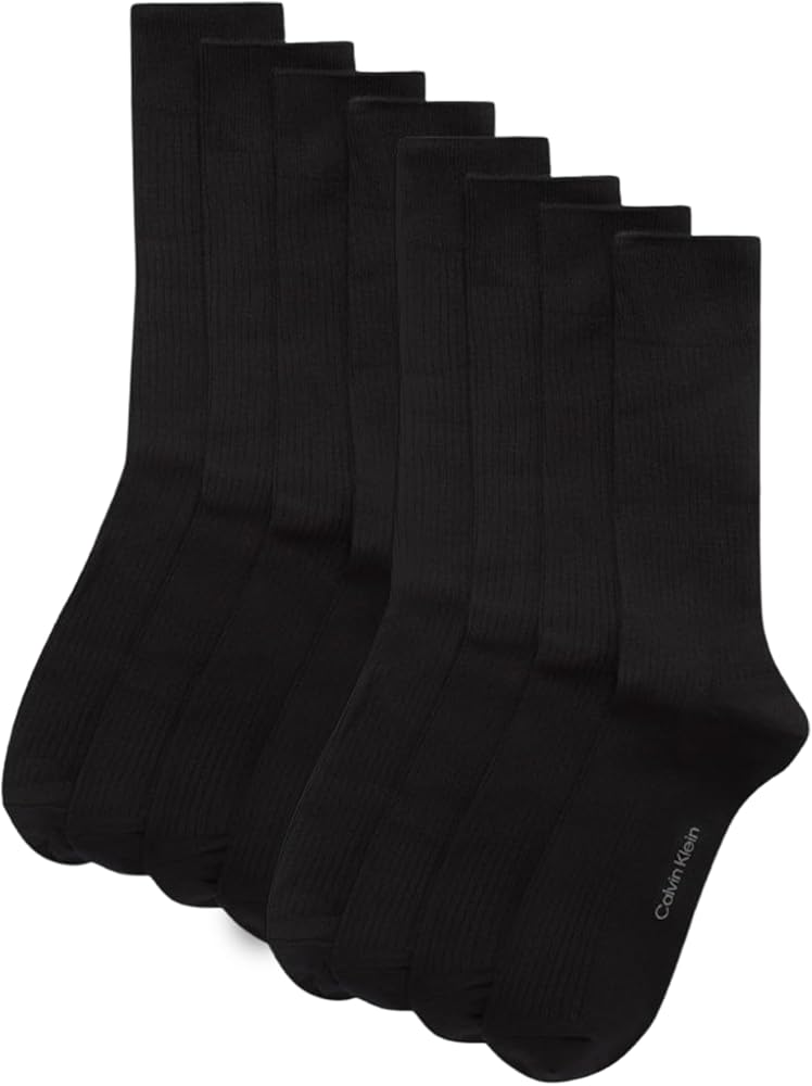Step into ultimate comfort and style with Calvin Klein Men's Crew Socks—the perfect blend of fashion, performance, and durability. Whether you're dressing up for a business meeting or keeping it casual, these socks are designed to be the ultimate wardrobe staple for any occasion. Each 8 pack of socks includes eight individual socks, offering exceptional value without sacrificing the premium quality that Calvin Klein is known for. Crafted from a soft cotton blend, these socks provide the breathability your feet need, keeping them cool and dry throughout the day. The lightweight material ensures that you can wear these socks with ease, whether you're sitting at your desk or on the move. The fabric wicks moisture away from the skin, making these the ideal choice for long-lasting comfort. Unlike other socks that lose their shape after a few washes, these crew socks for men feature reinforced heels and toes for added durability, making them resilient enough for everyday wear. A standout feature of these socks is the stay-up cuff, designed to prevent the socks from slipping or bunching as you go about your day. Say goodbye to constantly adjusting your socks! With a comfortable, secure fit, you can trust these socks to stay in place whether you're heading to the office, a formal event, or running errands around town. The ribbed construction ensures a snug fit without cutting into your skin, so you can focus on what matters. The Calvin Klein Men's Crew Socks are also designed with versatility in mind. Their crew length makes them ideal for pairing with everything from dress shoes to sneakers, easily transitioning from professional settings to more relaxed environments. Whether you're looking for reliable men's dress socks to wear with your suit or a comfortable option for your casual attire, these socks have you covered.