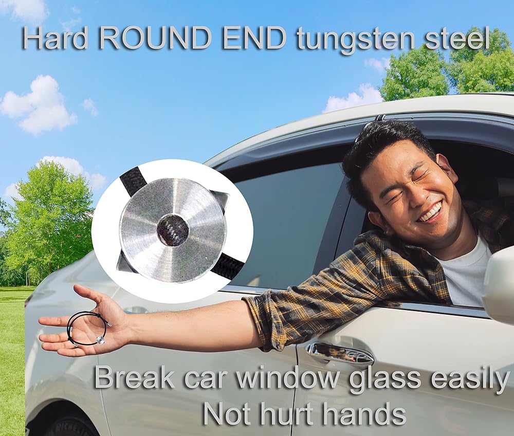 الهروب بسهولة: يمنحنا سوار الزجاج المكسور أفضل فرصة للهروب من السيارة. حتى لو كان طفلاً، يكسر زجاج نافذة السيارة المقسى بسهولة، أيًا كان من السيارة الداخلية أو الخارجية أو النافذة الجانبية أو النافذة الخلفية. أداة رائعة للهروب من السيارة