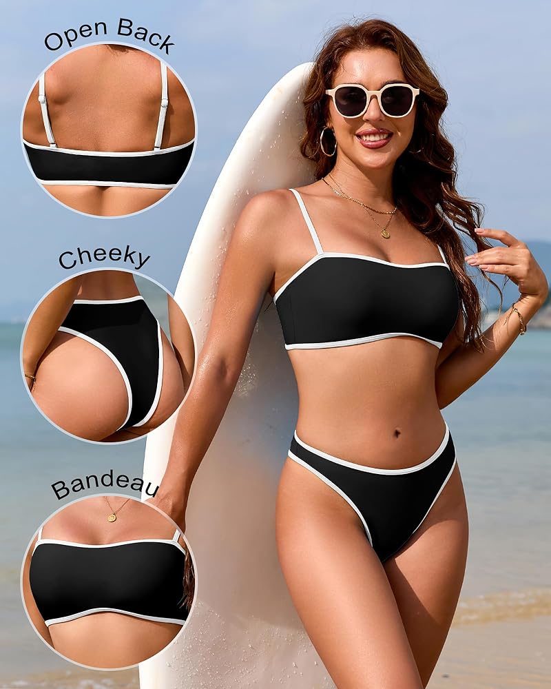 بدلة سباحة من قطعتين للنساء: مزيج من بيكيني علوي وجزء سفلي من البيكيني يوفر مظهرًا أنيقًا وعصريًا. توفر ملابس السباحة الرياضية للسيدات المرونة في المزج والتنسيق بين الأنماط المختلفة