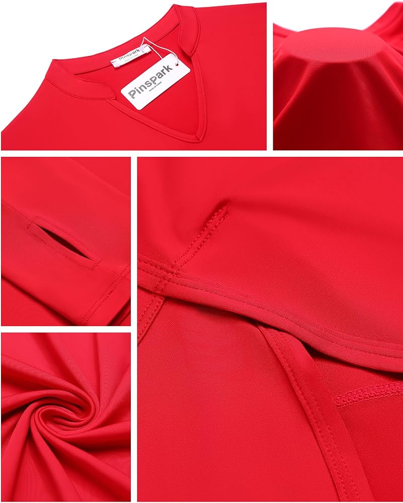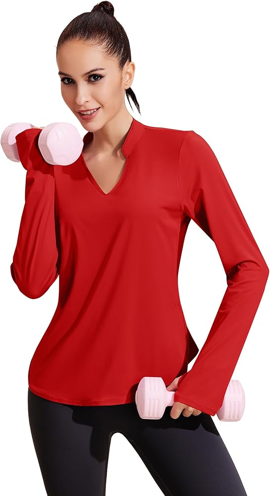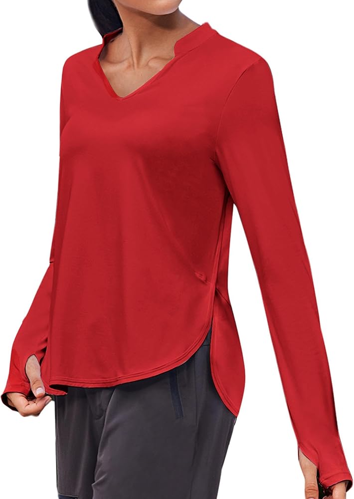 Pinspark Women's Long Sleeve Tops V Deck Detrictic Yoga قمصان مع ثقوب الإبهام السريعة الجافة الجافة قمم فضفاضة