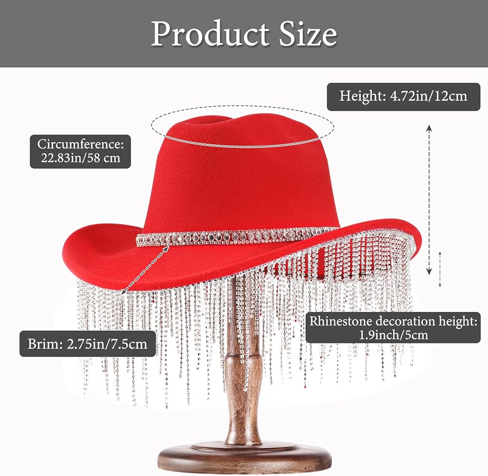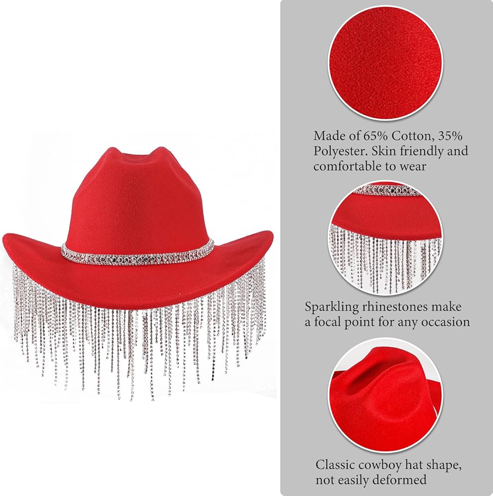• ✨تصميم رائع - تتألق أحجار الراين في قبعة رعاة البقر هذه تحت الضوء وتجمع بين عناصر الموضة لتجعلك مركز الاهتمام، مثالية للارتداء اليومي أو الحفلات.