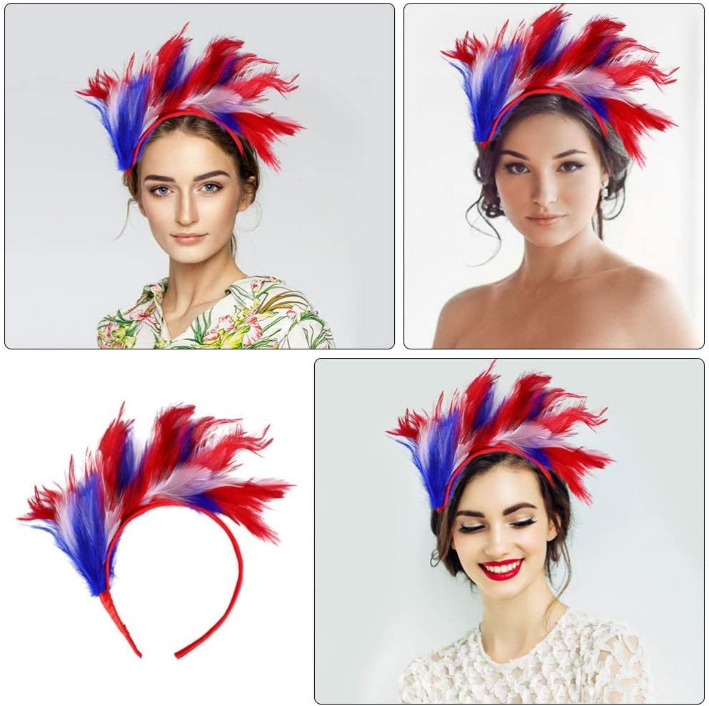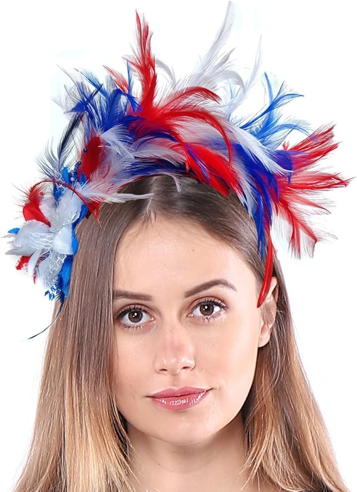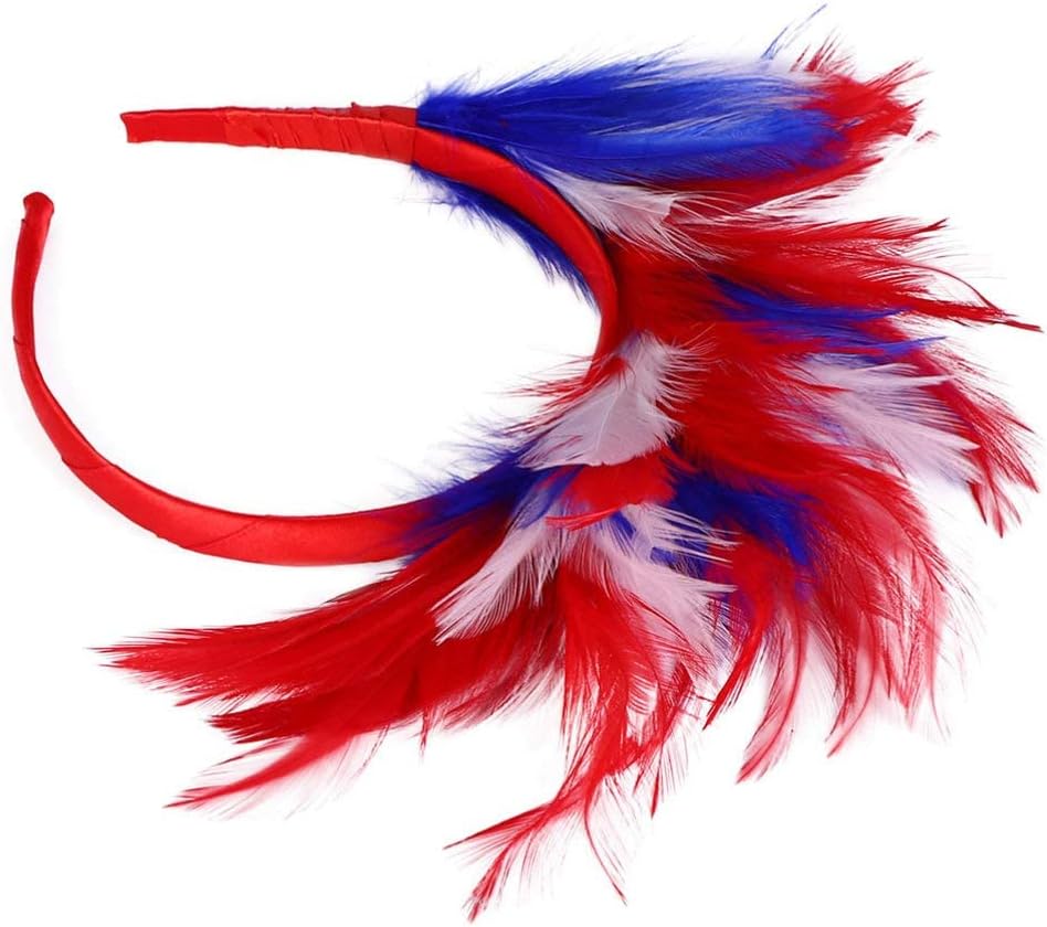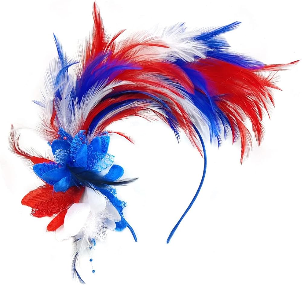 • 🧡【1920s Fascinator Headpiece for Women】Our flexible blue red white feather headband is made of superior feather, satin and plastic, high quality and beautiful. The flexible feather is fixed by a wire and can be twisted to any shape as you like. The satin headband was smooth and flexible , comfortable to wear or take off. Our feather fascinator headband are very light in weight. Even if you wear it all day, you won't feel heavy