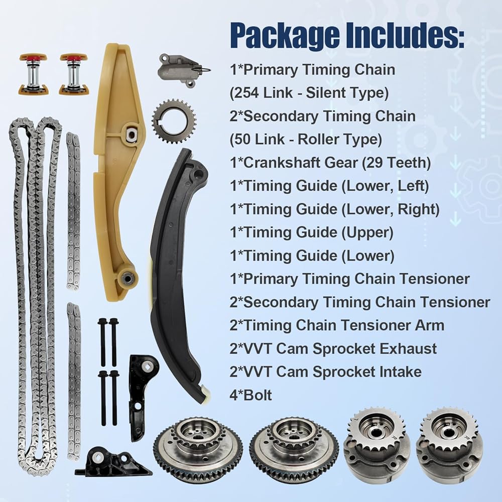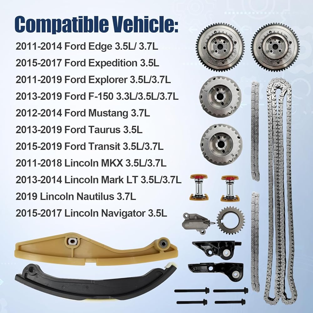 90738S مجموعة أدوات سلسلة التوقيت ث/VVT ضرس مناسب لفورد إكسبلورر إيدج F-150 إكسبيديشن توروس ترانزيت موستانج ولينكولن MKX مارك نوتيلوس نافيجيتور 2011-2019 3.3L 3.5L 3.7L