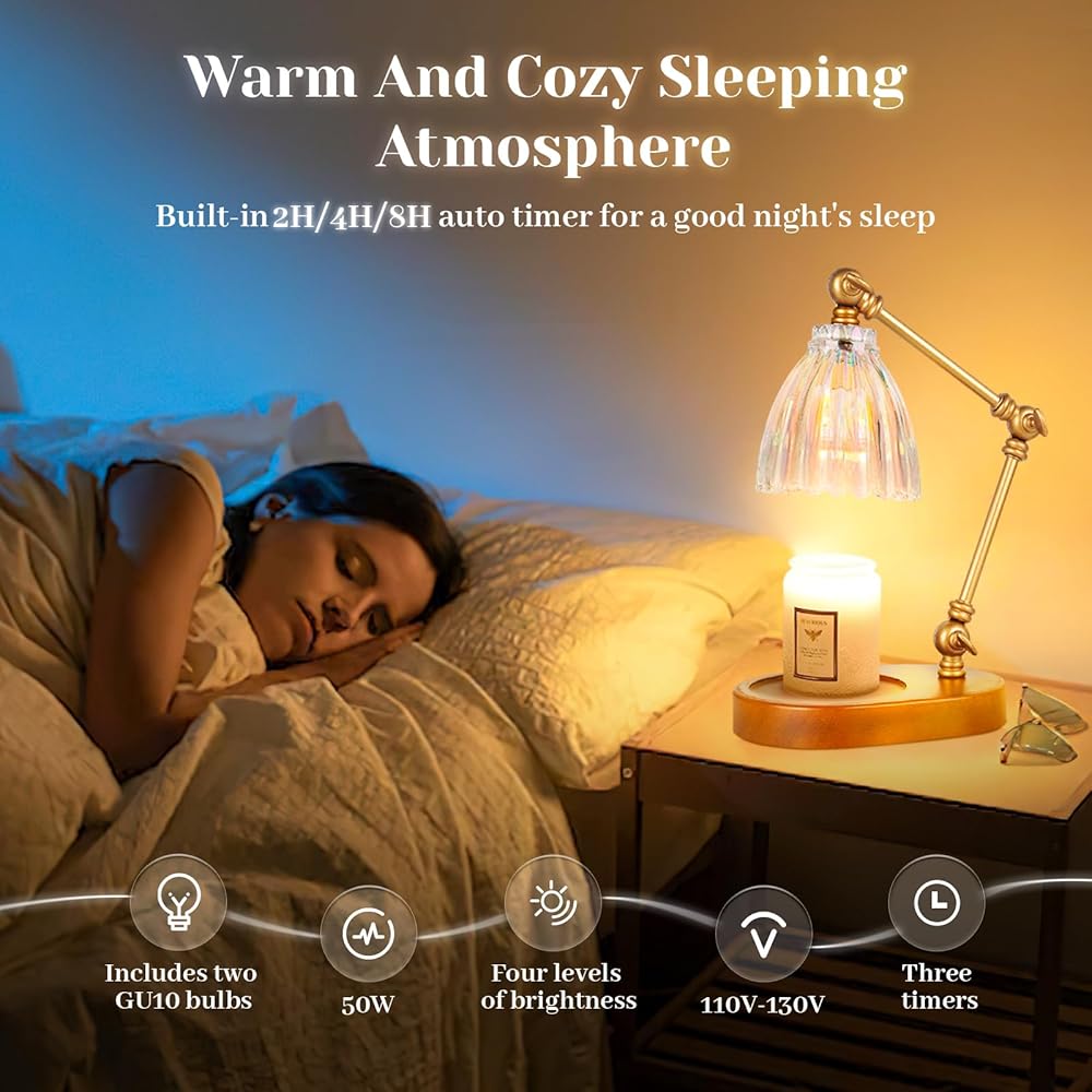 Dimmable and Timing Function: With dimming control on the lamp candle warmer electric, you can adjust the melting speed. The brighter the environment, the faster it melts. Additionally, you can also set the 2/4/8 hour timer function on this candle warmer lamp with timer.