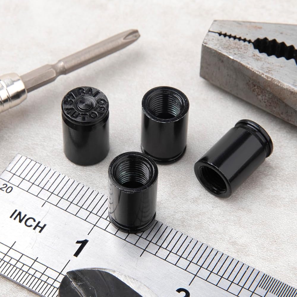 • Special Design: The aluminum valve stem caps are designed in bullet shape with black color and smooth surface. Eye-catching and stylish accessories are suitable for your car