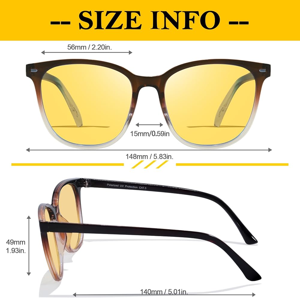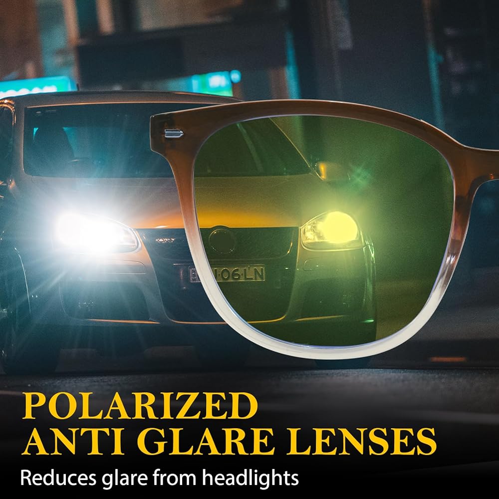 الاستقطاب يضعف الوهج: وظيفة العدسات المستقطبة هي مساعدتك على تقليل الوهج المبهر والاستجماتيزم الذي يؤثر على خط رؤيتك. يستخدم هذا الزوج من النظارات عدسات مستقطبة لمساعدتك على تقليل الوهج والانعكاس الناتج عن أسطح الطرق المختلفة عند السفر ليلاً، مما يوفر لك تجربة قيادة أكثر راحة