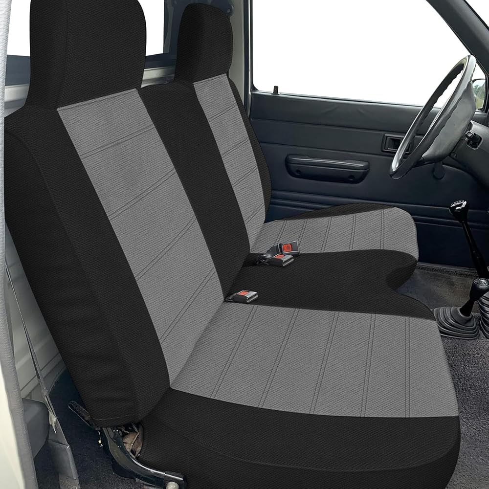 غطاء مقعد أمامي مخصص من SAPUBK مع مساند للرأس بديل لملحقات Toyota Pickup 1990-1995 (أسود ورمادي)