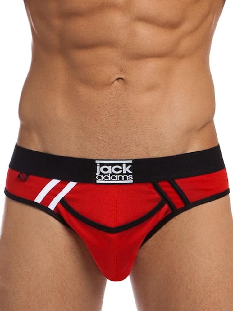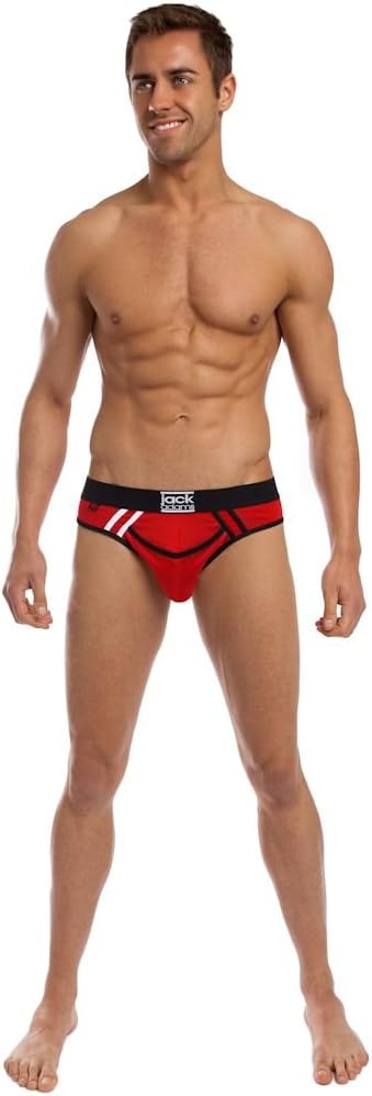 Staying true to the aesthetics of the jack Adams brand, it's not hard to recognize the athletic overall design. This low-rise brief features a complementary stripe detail front that leads to and separates from a contrasting side panel with our army fly pouch for generous room and comfort. Great for those guys who need more room in the front and rear