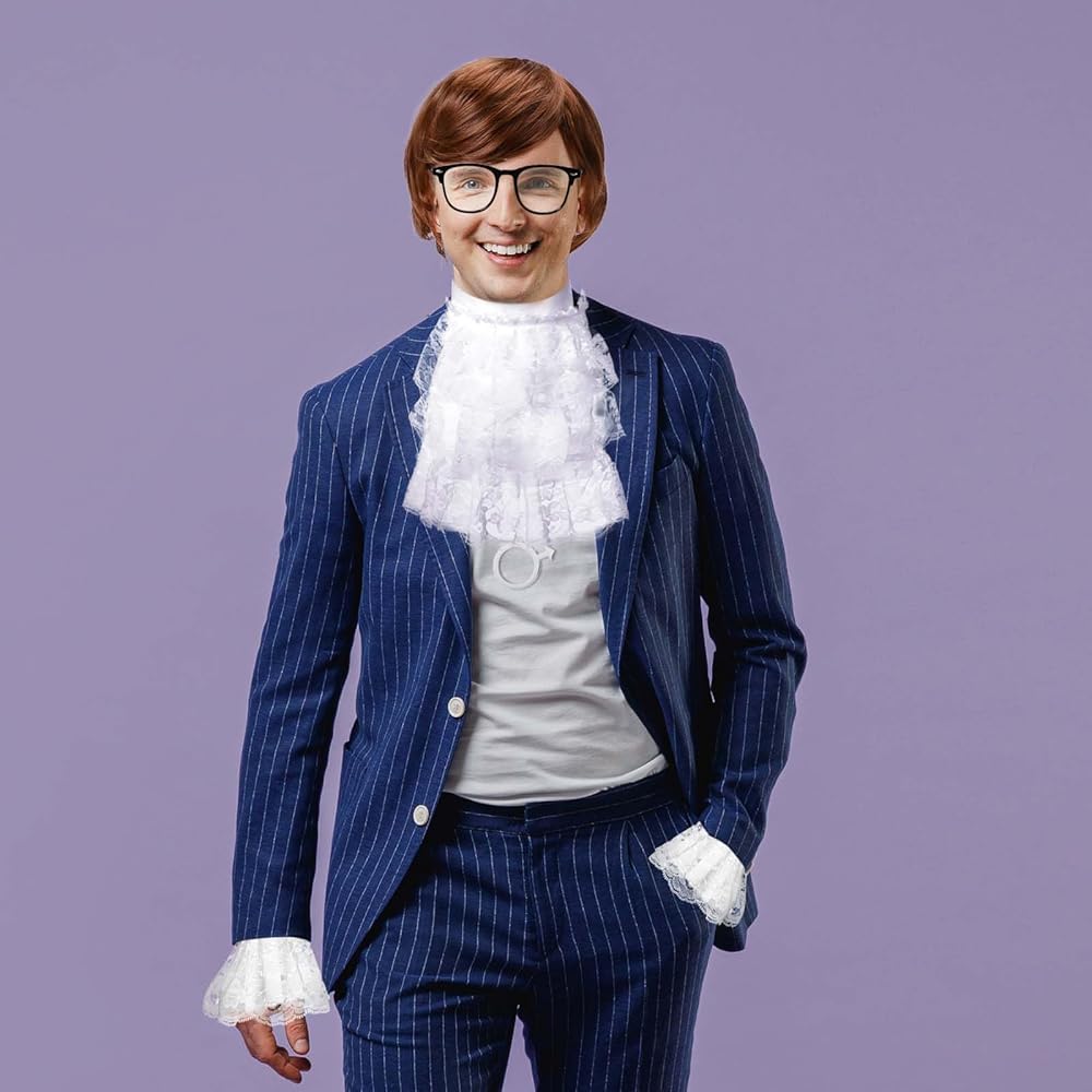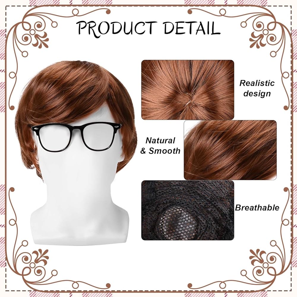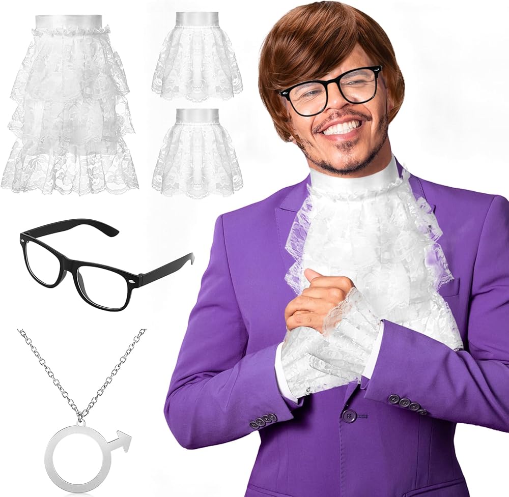 70s Accessory Set: You will receive 1 stylish brown wig, 1 elegant white lace collar, 1 pair of charming ruffled cuffs, 1 pair of stylish black frame glasses and 1 men's symbol necklace, perfect for Halloween themed party, and this is your best choice!