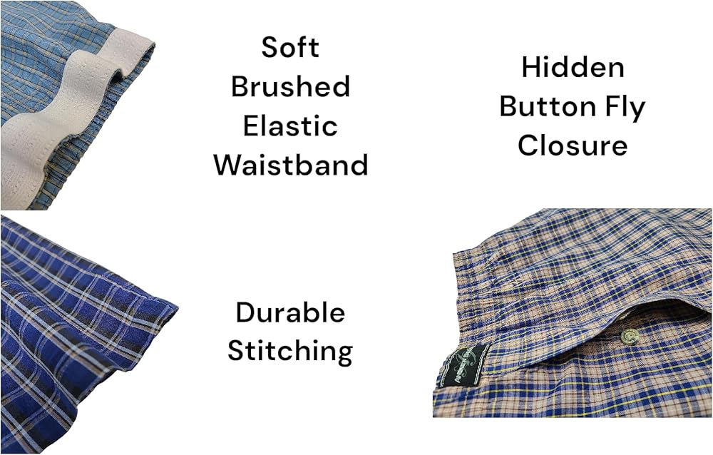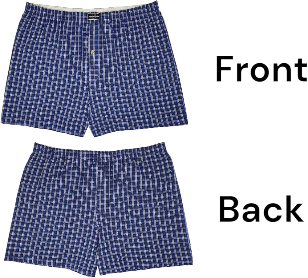 Andrew Scott Basics since 1935 : Multi Pack Woven Boxers by Andrew Scott Basics Soft Yarn Dye & Solid Color Cotton Blend Boxers . The Fabric Patterns are Yarn Dyed Soft ( and not like the stiff feel printed boxers ). Wide Leg Openings provide ease of movement but we suggest to buy a size up if your are of the bigger size if you want a fuller boxer look and fit. The waistband is a body side soft cotton brushed elastic & non binding to keep it right in place for all day comfort. The button fly opening feature is great so gals can use or borrow yours... Your Pack will be assorted patterns from Great selection as shown of over 50 Andrew Scott fashion plaids-prints-stripes or in solids as purchased.