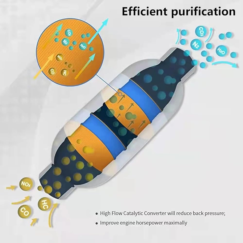【جودة معززة】مصنوع من الفولاذ المقاوم للصدأ عالي الجودة، يمكن لجزء الجسم من المحول الحفاز تحقيق هدف الاستخدام طويل الأمد وتحمل الغازات شديدة الحرارة. تحتوي ركائزها الخزفية الداخلية على محفزات معدنية ثمينة عالية التحميل، بما في ذلك Pt وRh وPd، لتعزيز كفاءة وكثافة التنقية. يتم تشكيل الركيزة في شكل مشوه للغاية لزيادة مساحة الاتصال بشكل كبير.