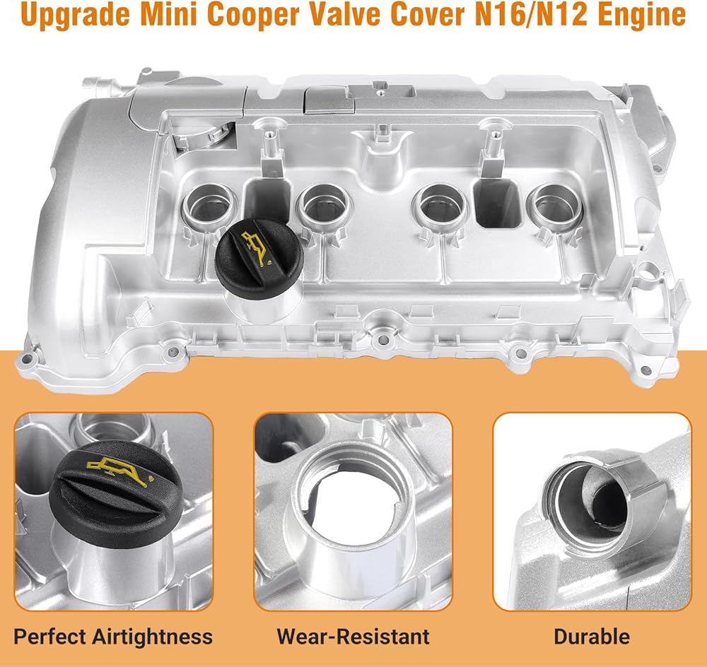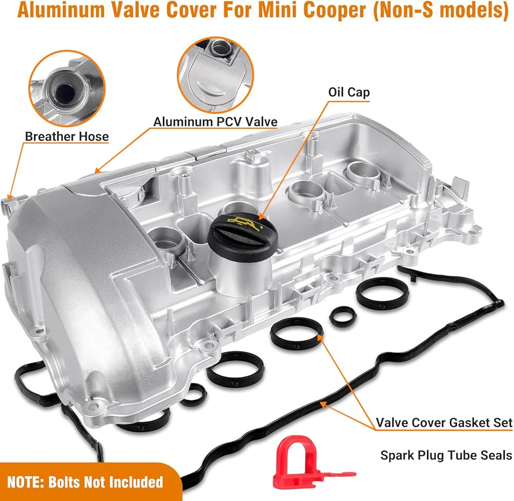 【Upgraded Material】The Upgrade Aluminum Mini Cooper Valve Cover has been greatly improved in durability, air tightness and wear resistance, The performance aluminum valve cover gasket kit more durable than the OEM plastic kit one, solve the oil leakage problem