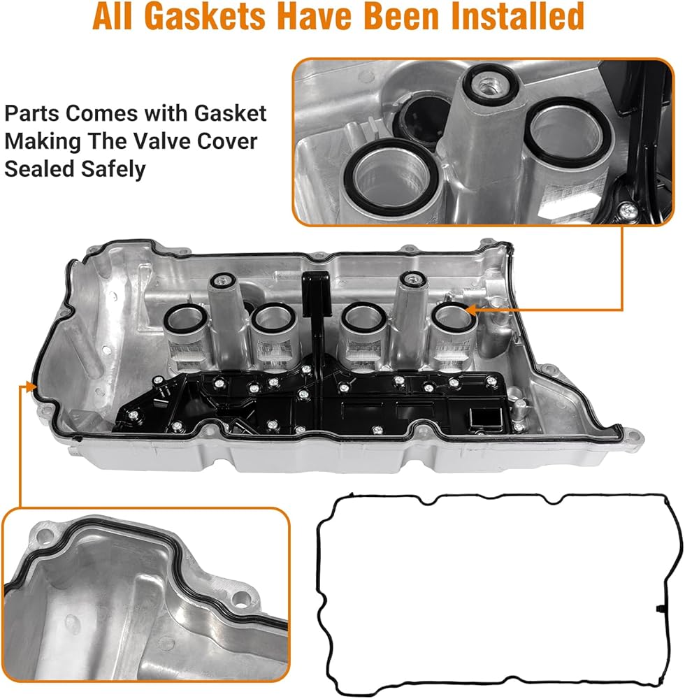 【Package Included】 1 x Aluminum Engine Valve Cover Assembly (with Oil Cap and PCV Cover and Spark Plug Tube Seals), 1 x Valve Cover Gasket