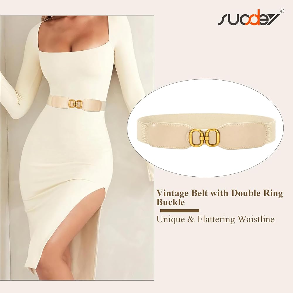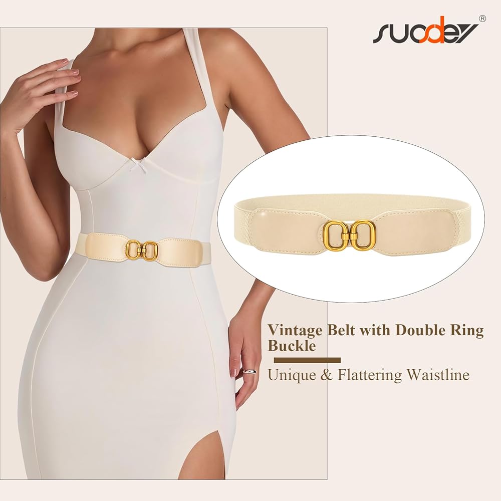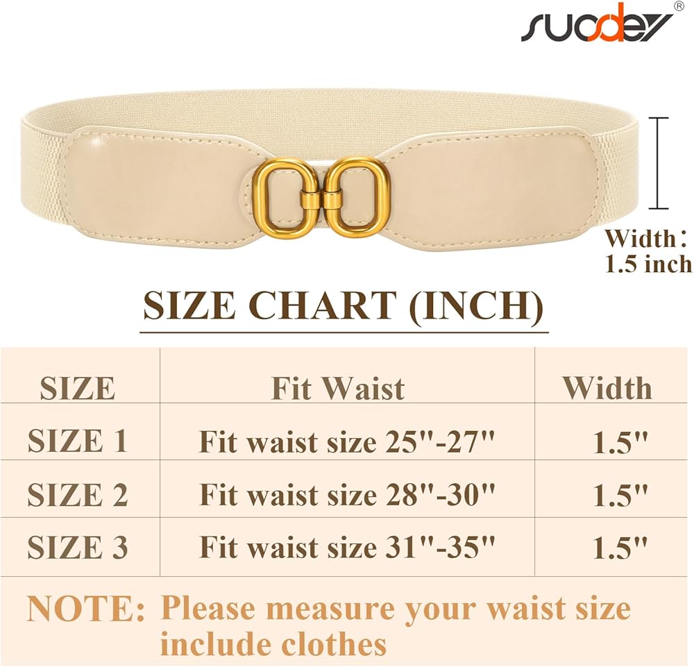 حزام خصر مطاطي عريض للسيدات من SUOSDEY، حزام خصر قابل للتمدد للفساتين، عرض 1.5 سم
