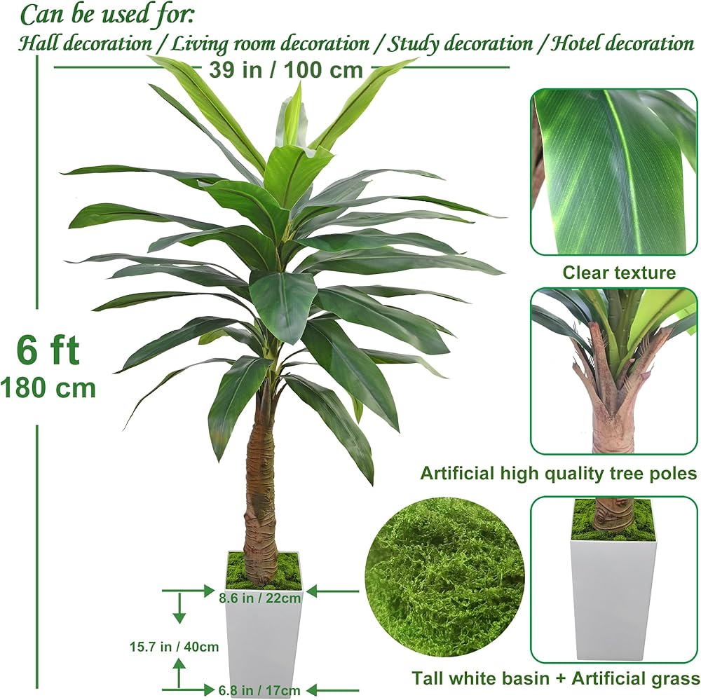 【 المظهر: يمكن للنباتات الاصطناعية في الأماكن المغلقة التي يبلغ ارتفاعها ستة أقدام أن تضيف إحساسًا معينًا بالأبعاد الثلاثة والطبقات إلى كل من المساحات الداخلية والخارجية، مما يجذب انتباه الناس، وملمس ولون الأوراق مشابه لتلك الموجودة في شجرة ألبينيا زيرومبيت الحقيقية. ، كما أن ملمس الفروع واقعي للغاية، مما يجعل من الصعب التمييز بين الحقيقي والمزيف