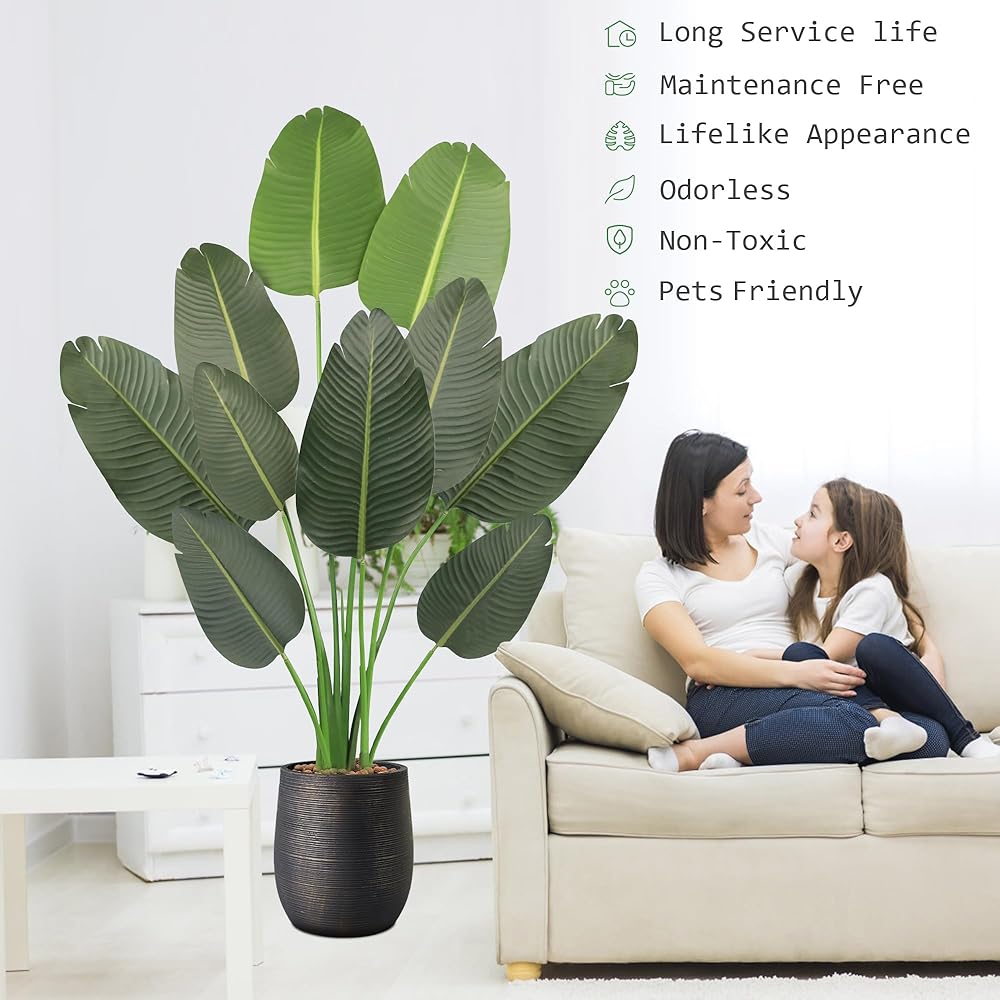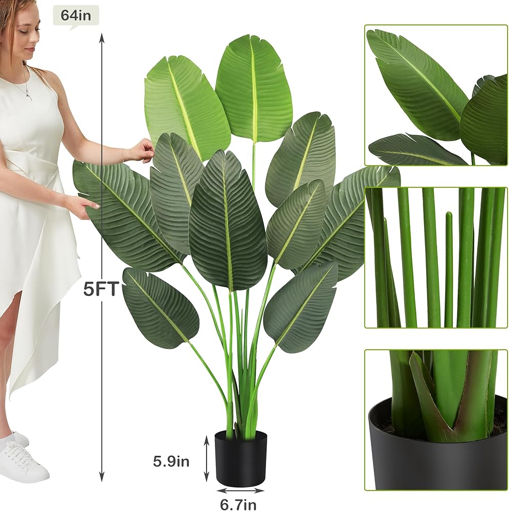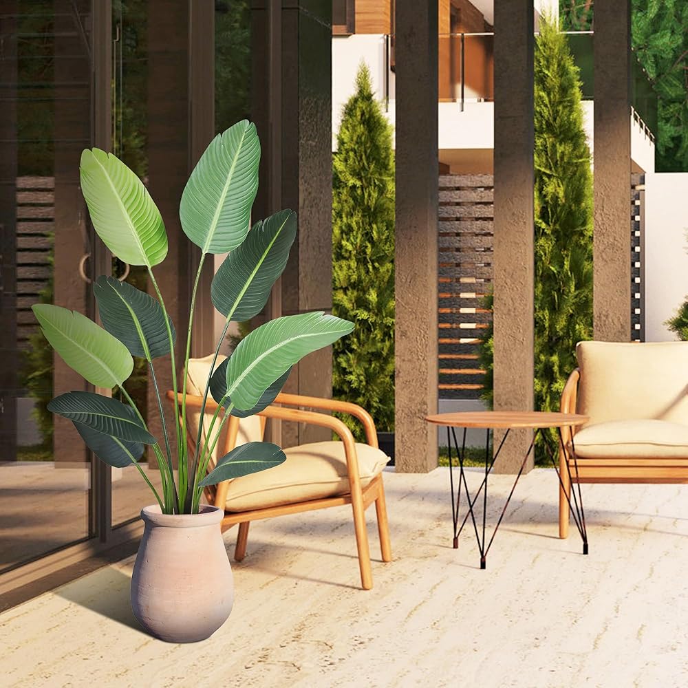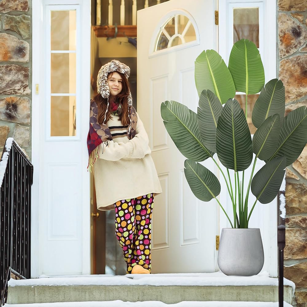 ديكور داخلي وخارجي: طائر الجنة الاصطناعي الخاص بنا يتوافق تمامًا مع أي مساحة داخلية، مما يوفر النضارة والخضراء لأي غرفة أو تراس أو شرفة أو فناء. مثالي لديكور المنزل والمكتب، وهدايا الانتقال لمنزل جديد، وحفلات الزفاف، وأكثر من ذلك، يناسب نبات الشجرة الاصطناعية لدينا أي مناسبة ونمط ديكور؛ الارتفاع: 3.8 قدم (45 بوصة)؛ الكمية: 1