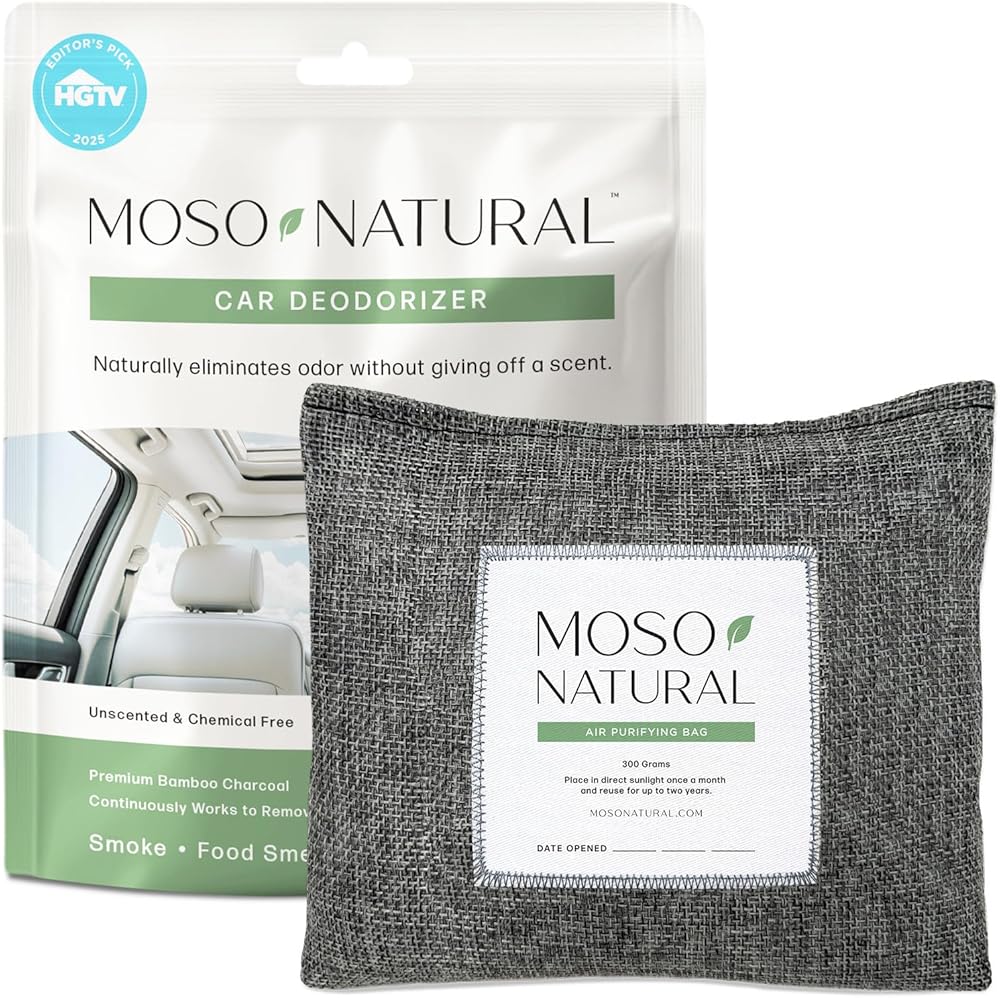 معطر هواء ومزيل الروائح الكريهة الطبيعي للسيارة من موسو | ممتص رائحة فحم الخيزران طويل الأمد | مزيل رائحة غير سامة للسيارات | حقيبة لتنقية الهواء بدون رائحة