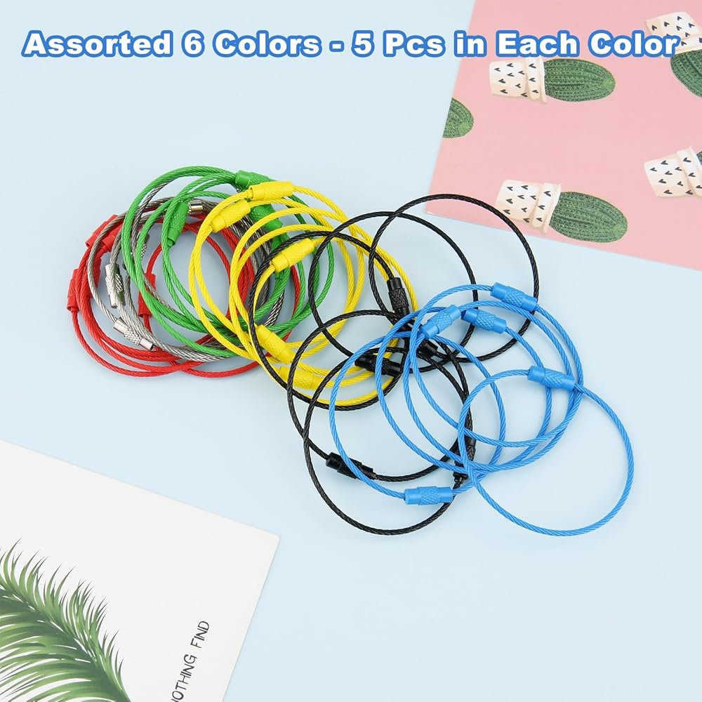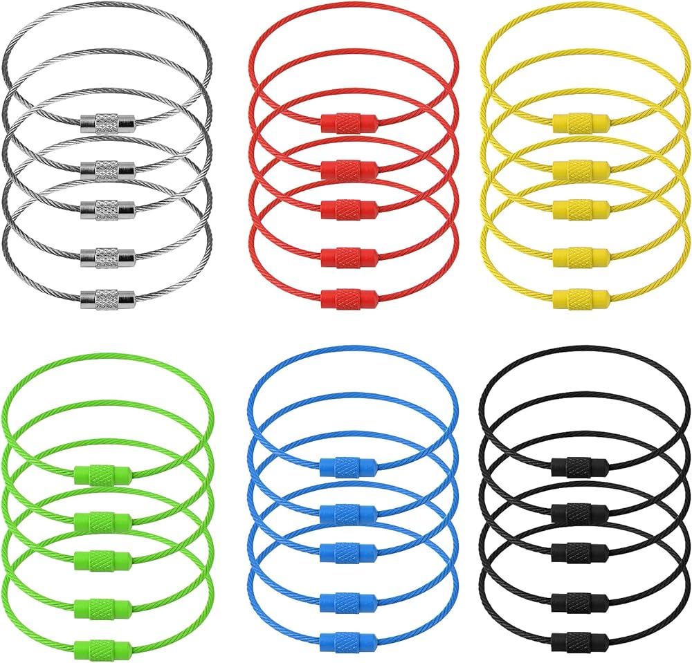 STURDY WIRE RINGS FOR TRAVEL: Each pack comes with 30 pcs wire keychains, assorted in 6 colors, each color have 5 pcs. Colored coded wire cable loop can help you distinguish and enough quantities for different daily needs.