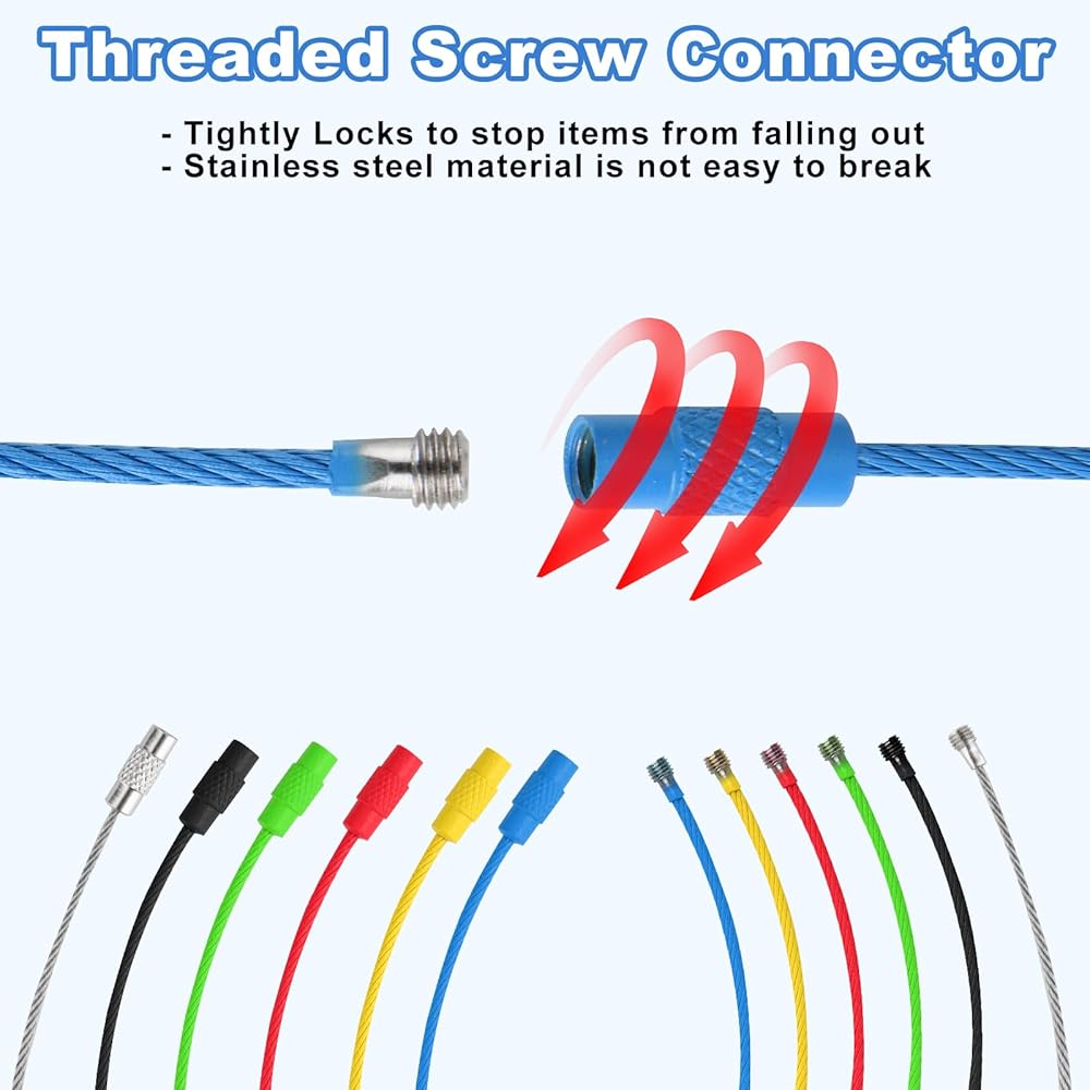 COMBINED MORE LOOPS: Length of single wire cable is 6 inches, 1.85 inches diameter in round circle. You can combine 2 or more wire cable together for longer loops, and add or remove items by screwing / unscrewing the connector.
