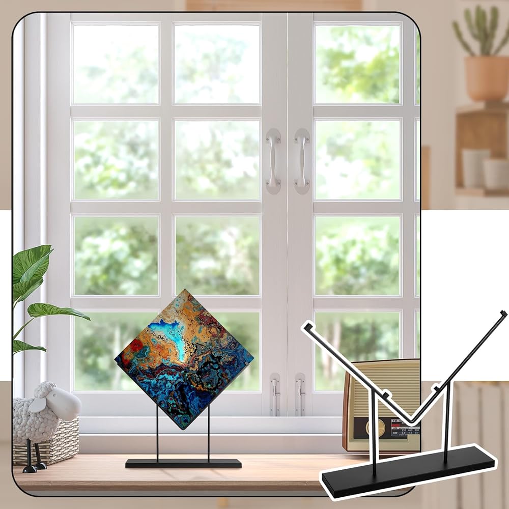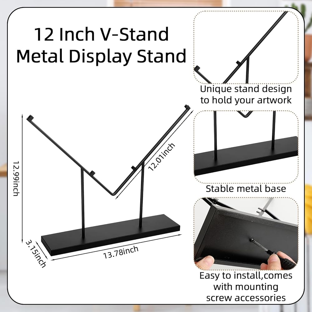 This metal stand for display is designed with a 90 degree angle and is suitable for displaying plaques, tiles, glass artwork and more, adding a touch of art to your home or office.